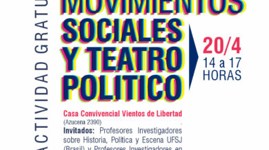 El próximo 20 de abril, de 14 a 17 horas, se llevará a cabo el Encuentro “Movimientos sociales y teatro político” en la Casa Convivencial Vientos de Libertad. La actividad propone un espacio de intercambio
