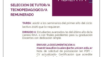 La Maestría en Artes Audiovisuales abre el llamado a selección de un/a tutor/a tecnopedagógico/a...
