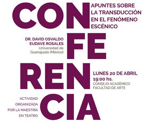 La Maestría en Teatro invita a una nueva conferencia abierta el próximo lunes 20 deMás información
