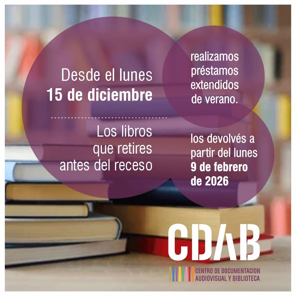 Desde el lunes 15 de diciembre, el Centro de Documentación Audiovisual y Biblioteca (CDAB) de la Facultad de Arte realizará préstamos extendidos de verano. Esta modalidad implica que lxs interesadxs podrán retirar libros u otros materiales y devolverlos una vez que retornen las actividades académicas y administrativas a partir del lunes 9 de febrero de 2026. De esta manera continuamos promoviendo el acceso a fuentes bibliográficas especializadas, la formación académica, el pensamiento crítico-reflexivo y estimulamos la investigación artística vinculando teoría y práctica.