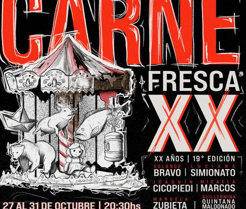 La Cátedra Práctica Integrada III –Dr. Juan Urraco – Prof. Ignacio D. Delfino – Prof. Juan Rosso- de la carrera de Teatro de la Facultad de Arte invita a la comunidad a participar del Ciclo Carne Fresca, que celebra sus 20 años y llega a su 19ª edición en 2025. Este ciclo es un espacio dedicado a la exhibición y promoción de nuevos y nuevas directoras teatrales, fomentando el desarrollo artístico en el ámbito teatral.