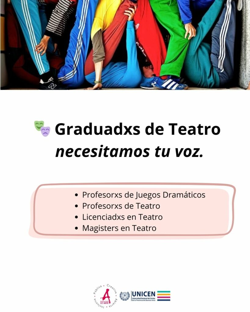 El proyecto de investigación “La criatura creativa aprende a hablar”, enmarcado en el CID y dirigido por el Dr. Juan Urraco, invita a lxs graduadxs de Teatro de la Facultad de Arte a participar de una encuesta breve, anónima y voluntaria.