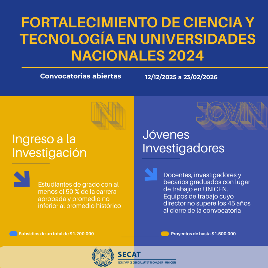 Subsidios INI – Ingreso a la Investigación correspondiente al PROGRAMA DE FORTALECIMIENTO DE CIENCIA Y TECNOLOGÍA EN UNIVERSIDADES NACIONALES 2024, hasta el día 23 de febrero de 2026 a las 13:00 hs.