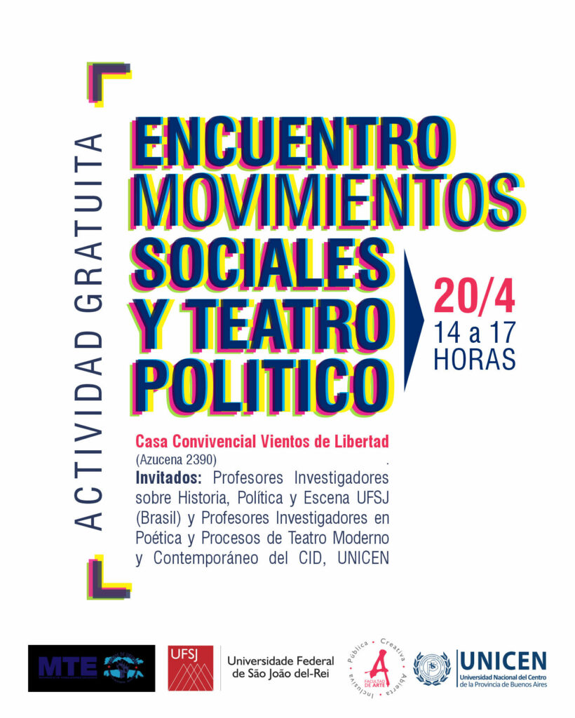 Organizado de manera conjunta por Vientos de Libertad, la Universidade Federal de São João del-Rei y la Facultad de Arte de la UNICEN, el encuentro se presenta como una oportunidad para pensar colectivamente el teatro político en diálogo con las realidades territoriales.