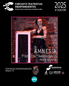 En el marco de la 4° edición del Circuito de Teatristas Independientes Región XI Centro Sur PBA, se presenta en Tandil la obra de teatro “A.M.N.E.S.I.A”, de la ciudad de Tres Arroyos.