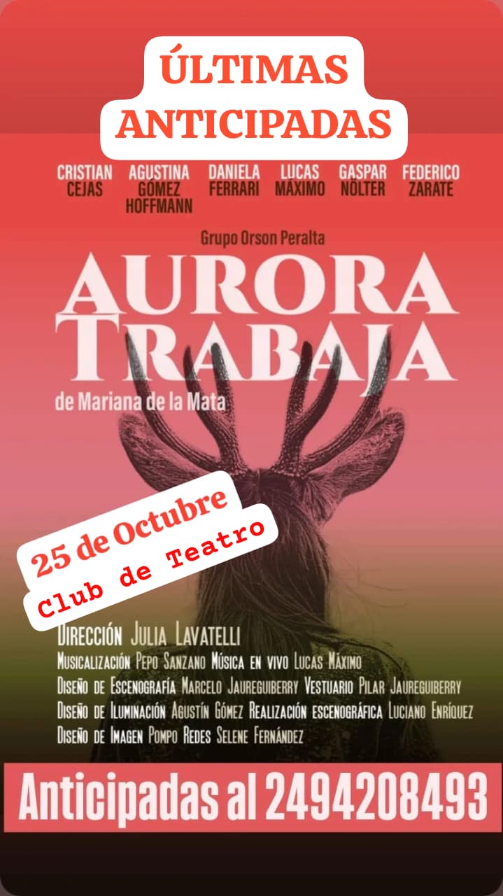 La obra Aurora Trabaja se presentará el Sábado 25 de Octubre, a las 21hs, en el Club de Teatro.