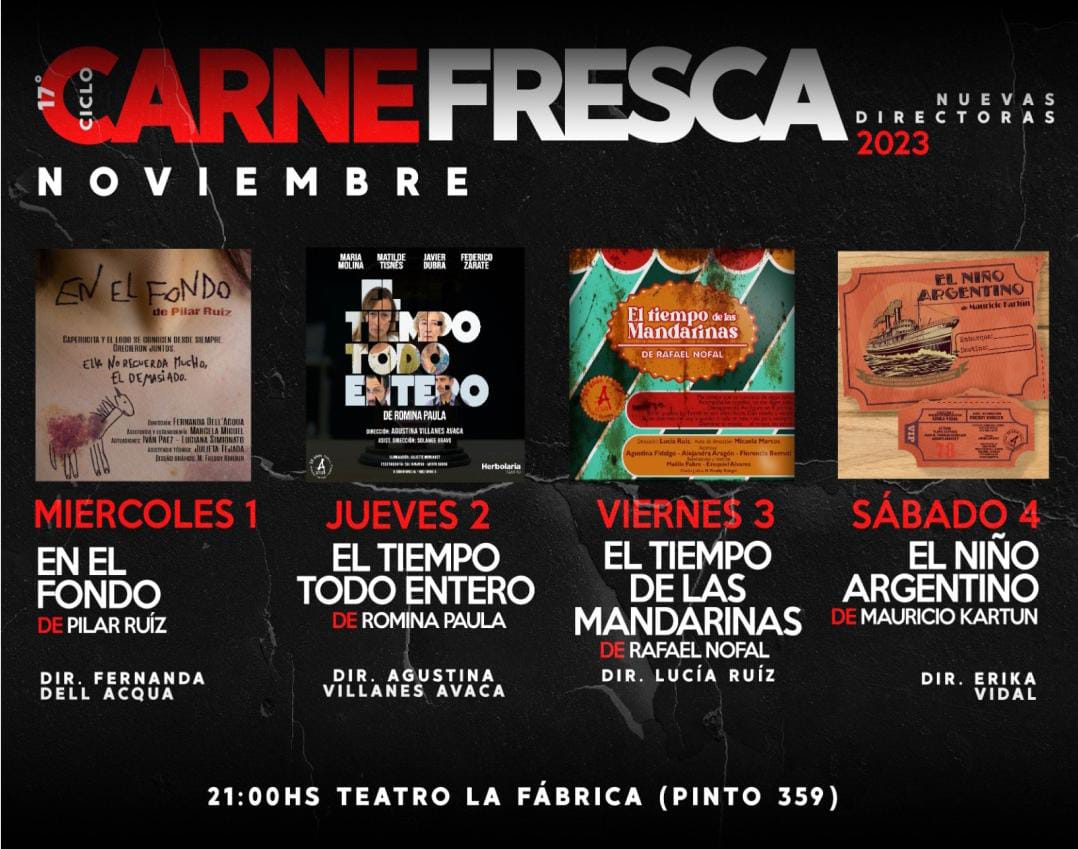 Ciclo “carne fresca”. Catedra practica integrada III, del profesorado de teatro de la facultad de arte, integrada por el Dr. Juan Urraco y el Prof. Ignacio Diaz Delfino .