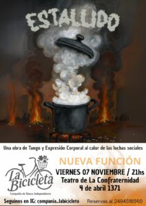La obra “Estallido” se realizará el Viernes 07 de Noviembre, a las 21hs, en el Teatro de la Confraternidad.