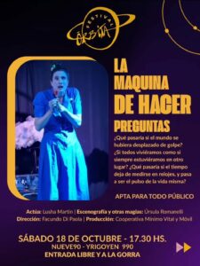 LA MAQUINA DE HACER PREGUNTAS se presentará el sábado 18 de octubre a las 17,30 hs. en Nueve90 – Yrigoyen 990