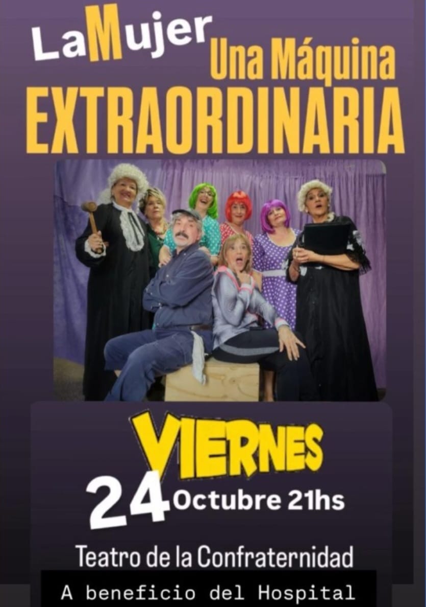 🎭 Este viernes en el Teatro de la Confraternidad, llega la comedia “La mujer, una máquina extraordinaria”, escrita por Maru Silva y dirigida por Cristina Carone.