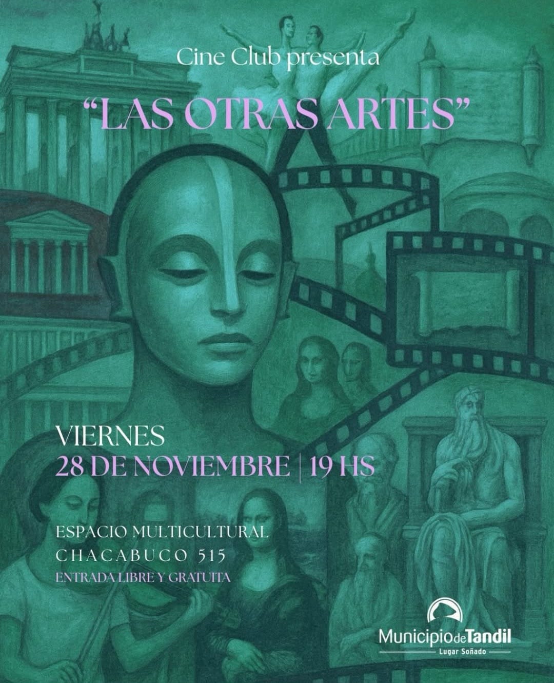 En esta oportunidad conoceremos cómo la arquitectura, la escultura, las artes plásticas, la danza, la literatura y la música han sido contenidas, nutridas y todas juntas han aportado para crear el lenguaje audiovisual, conformando el séptimo arte: el cine.
