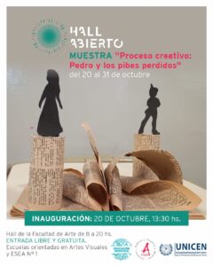 La Secretaría de Extensión de la Facultad de Arte, la Jefatura Distrital de Educación y la Inspección de Educación Artística invitan a una exposición que comparte el diseño de escenografía y vestuario de la obra teatral “Pedro y los pibes perdidos” estrenada en Tandil, realizada por estudiantes de escuelas secundarias con orientación en artes visuales y la ESEA N°1.