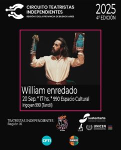 En el marco de la 4° edición del Circuito de Teatristas Independientes Región XI Centro Sur PBA, Gustavo Wilson de la ciudad de Necochea llega a Tandil con la obra de teatro “William enredado”, de Gustavo Wilson.