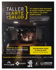 La propuesta se encuentra destinada a Usuarios de la Dirección de Salud Mental Comunitaria y interesadxs en general, es no es arancelado y se desarrollará todos los viernes de 8.30 a 10 hs en el Teatro de la Confraternidad.