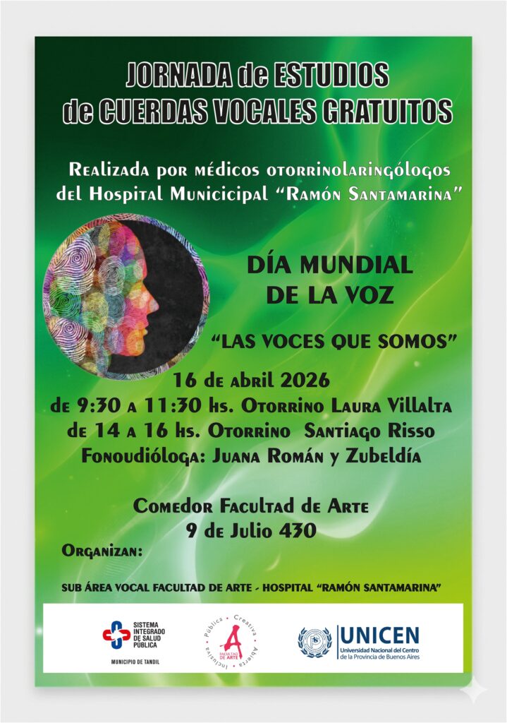 Bajo el lema “Las voces que somos”, y en el marco del II Congreso Internacional en Artes, se llevará adelante una jornada gratuita de estudios de cuerdas vocales abierta a toda la comunidad. La actividad es organizada por la subárea vocal de la carrera de Teatro, en articulación con el Hospital Municipal Ramón Santamarina, en conmemoración del Día Mundial de la Voz.