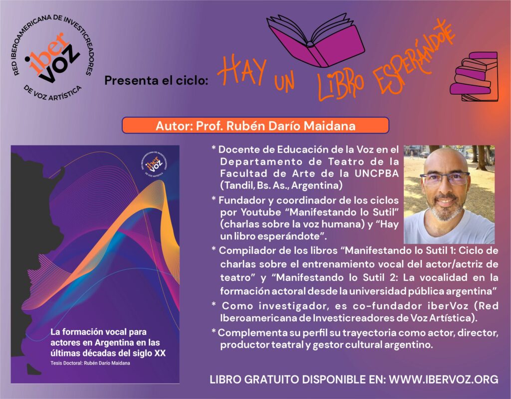 El libro toma como base la tesis doctoral del Dr. Rubén Darío Maidana, docente investigador del TECC de nuestra Facultad, y constituye un valioso aporte al campo de la formación vocal en el ámbito teatral argentino.