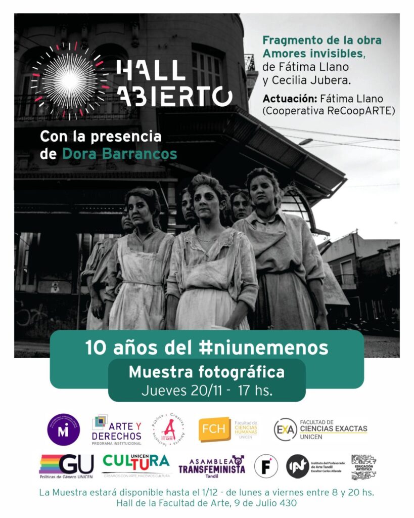 Se invita a toda la comunidad a la inauguración de la Muestra 10 años del #Niunemenos, que tendrá lugar en el marco del Proyecto de Extensión Hall Abierto, con la participación del Programa Institucional Arte y Derechos de la Facultad de Arte en la Asamblea Transfeminista Tandil, y en articulación con distintos espacios e instituciones de la ciudad.