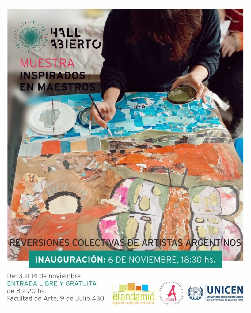 Del 3 al 14 de noviembre, el público podrá disfrutar de la exposición de obras realizadas en el taller de pintura que se desarrolla en el espacio educativo terapéutico “El Andamio” de la ciudad de Tandil. Las producciones se presentan en la muestra titulada “Inspirados en Maestros. Reversiones colectivas de artistas argentinos”, una propuesta que invita a redescubrir la obras de grandes referentes del arte nacional a través de nuevas miradas.