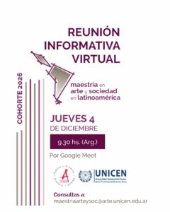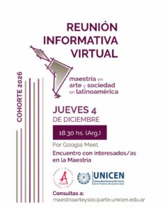 La Maestría en Arte y Sociedad en Latinoamérica invita a participar de reuniones informativas virtuales destinada a personas interesadas en dicho posgrado, correspondiente a la cohorte 2026.