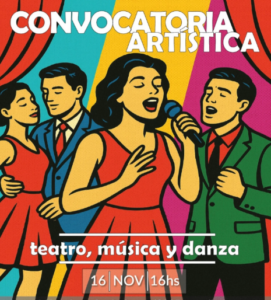 CONVOCATORIA ARTÍSTICA -TEATRO, MÚSICA Y DANZA- Si tenes algún número artístico, cantas o sos bailarín/a podes participar. CIERRE: 15 de Octubre de 2025 Para conocer las bases y condiciones, envía un mail a festivalteatral2025@gmail.com |