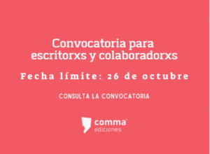CONVOCATORIA PARA ESCRITORES Y COLABORADORES ¿Buscas un lugar para publicar tu obra? Esta es una oportunidad para que tu voz sea escuchada. Se aceptan propuestas de narrativa, poesía, ensayo, reseña, crónica y columna. Envía tus textos a infocomma.ediciones@gmail.com CIERRE: 26 de Octubre de 2025 |