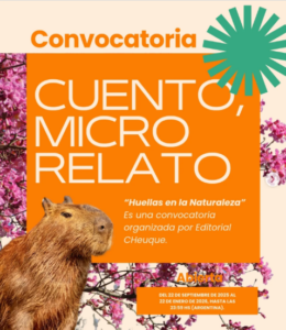 CUENTO Y MICRORELATO Editorial Cheuque abre esta convocatoria para promover la conciencia ambiental y el respeto por nuestro entorno a través de la literatura. Invita a romper el molde de los cuentos estereotipados y trabajar cuentos y microrelatos filosóficos, ambientales y con pensamiento crítico. CIERRE: 22 de Enero 2026. |