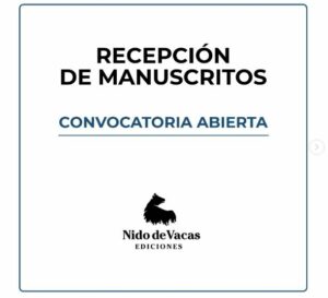 RECEPCIÓN DE MANUSCRITOS: CONVOCATORIA ABIERTA En Nido de Vacas están en la búsqueda de obras que desafíen e inspiren, voces distintivas que enriquezcan su catálogo. CIERRE: 31 de Diciembre de 2025 |