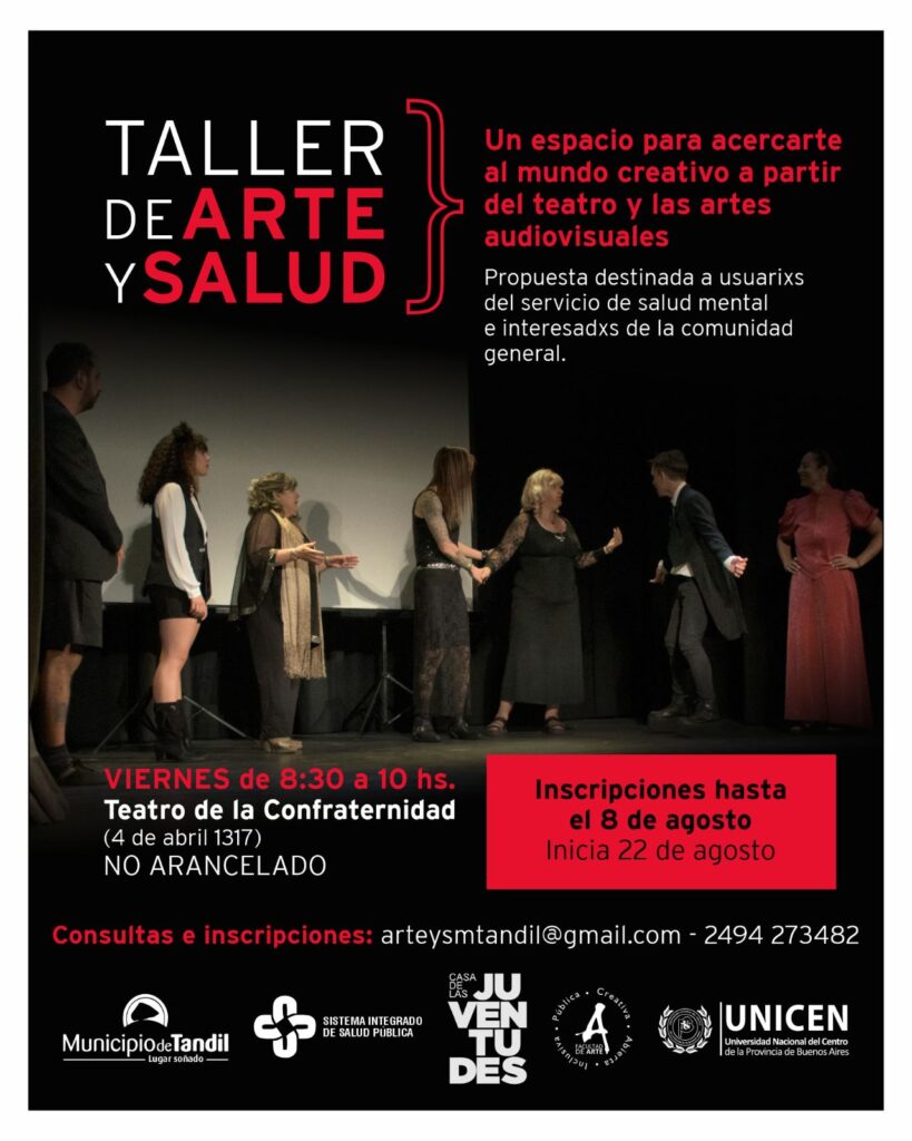 El taller se desarrollará a partir del 22 de agosto, los viernes de 8.30 a 10hs., en el Teatro de la Confraternidad Ferroviaria (Tandil) y se propone como un espacio para acercarte al mundo creativo a partir del teatro y las artes audiovisuales. Destinado a usuarixs del servicio de salud mental e interesadxs de la comunidad general.