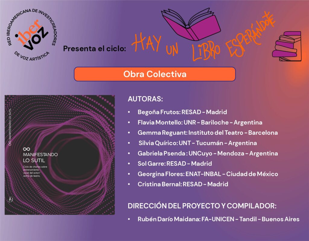 El ciclo “Hay un libro esperándote” es una iniciativa creada y coordinada por el Dr. Rubén Darío Maidana, docente e investigador de nuestra Facultad y uno de los miembros fundadores de iberVoz. A través de estas producciones, la red reafirma su misión de tender puentes entre el conocimiento especializado y la sociedad, visibilizando materiales escritos fruto de investigaciones rigurosas y experiencias en aulas o escenarios. De este modo se establecen puentes entre creadores, docentes e investigadores, fomentando así una comunidad activa en torno al entrenamiento vocal para la voz artística.