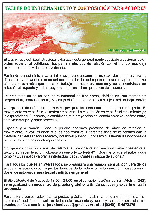 Taller de entrenamiento y composición para actores