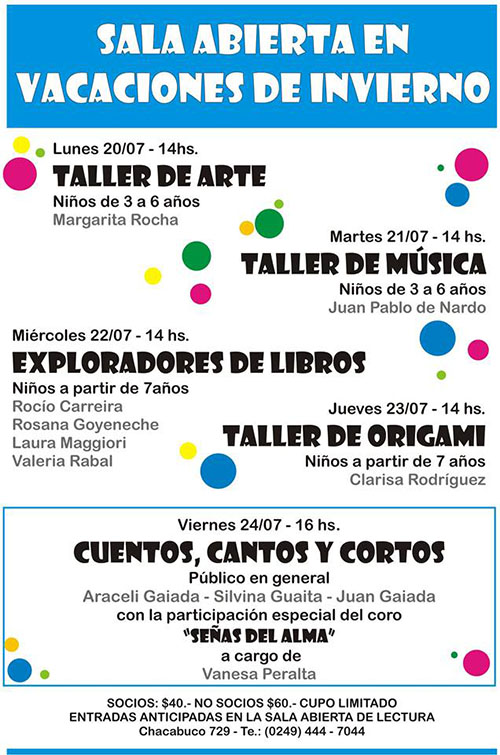 Las entradas para todos los espectáculos pueden conseguirse -con descuento- en el Kiosco LA ESQUINA de Chacabuco y Belgrano.