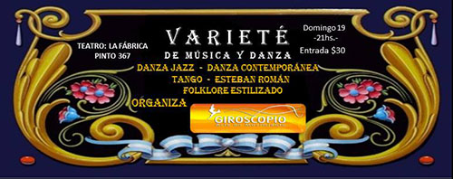 Varieté organizada por giroscopio arte en movimiento – Valor de la entrada $30 - Se venderán en puerta a partir de las 20:30