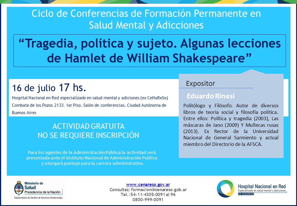 Conferencia "Tragedia, política y sujeto. Algunas lecciones de Hamlet de William Shakespeare" CABA