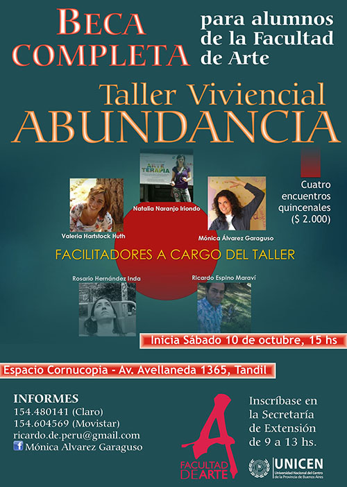 Fecha de inicio sábado 10 de octubre a las 15hs. Se dictará en el Espacio Cornucopia (cuerno de la abundancia) Av. Avellaneda 1365, Tandil.