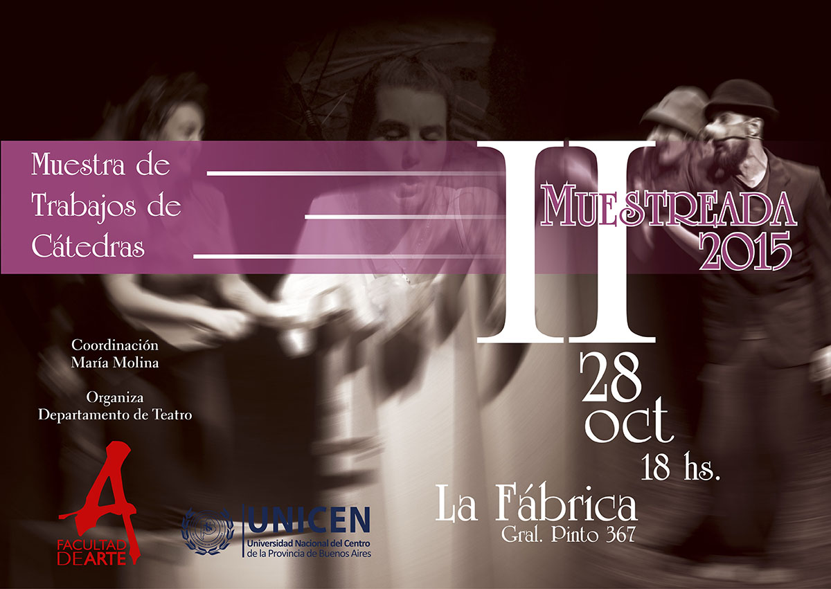 Así, se organizó la Muestreada comenzando con aquellas cátedras vinculadas con el trabajo corporal, el canto y finalmente la actuación. En este sentido Rítmica presentó un trabajo colectivo con alumnos de primer año denominado “Comienzo...”. La cátedra deExpresión Corporal II mostró dos escenas donde los alumnos improvisaban acciones físicas a partir de un tema planteado de antemano. ElSeminario de Introducción a la Comedia Musical propuesta de extensión de la cátedra Música y Coreografía (orientación música) -que comenzó a dictarse en el mes de agosto- presentó un trabajo extraído de la comedia musical “Drácula” de P. Cibrián y otro denominado “El lamento de una diva” que pertenece al grupo cómico inglés Monty Python. La cátedra Interpretación I de primer año montó la presentación de escenas donde los alumnos improvisaban situaciones a partir de textos dramáticos que se trabajan en la cursada. Por su lado,Interpretación II mostró dos escenas de Teatro Épico tomando textos de Bertolt Brecht y; finalmente Interpretación III presentó tres escenas enmarcadas en Teatro Clásico Isabelino: dos escenas de Otelo de W. Shakespeare y una de Romeo y Julieta del mismo autor.