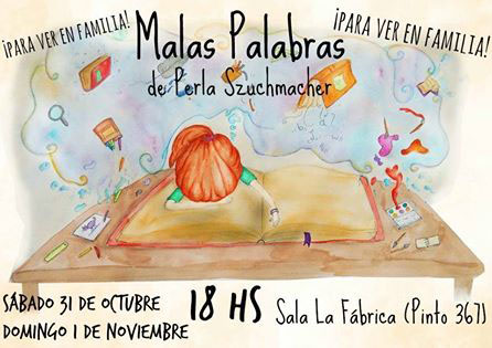 El sábado 31 de octubre y el domingo 1 de noviembre a las 18:00hs en el Teatro La Fábrica, Pinto 367, vuelve a presentarse la obra "Malas palabras" de Perla Szuchmacher