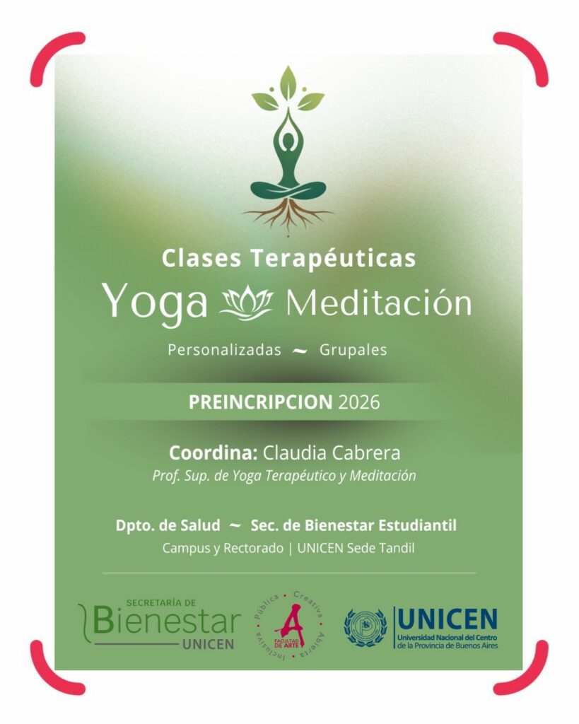 Se llevará a cabo los días martes de 9 a 10 hs. en el Aula 1 – Facultad de Arte- y estará coordinado por Claudia Cabrera, Profesora Superior de Yoga Terapéutico y Meditación. La actividad es impulsada por el Área de Salud de Bienestar UNICEN, junto a las Secretarías Académica y de Extensión de la Facultad de Arte.